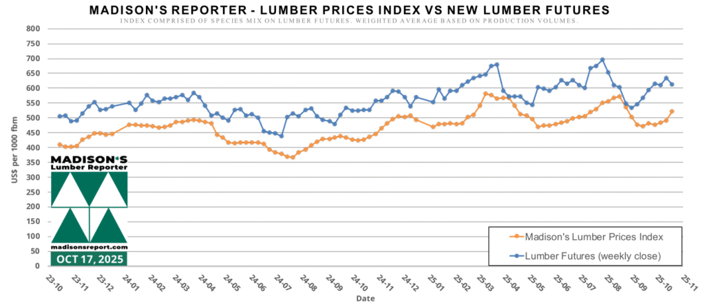 Madison’s lumber prices index is created Using the same species/product mix as Lumber Futures trading on the Chicago Mercantile Exchange