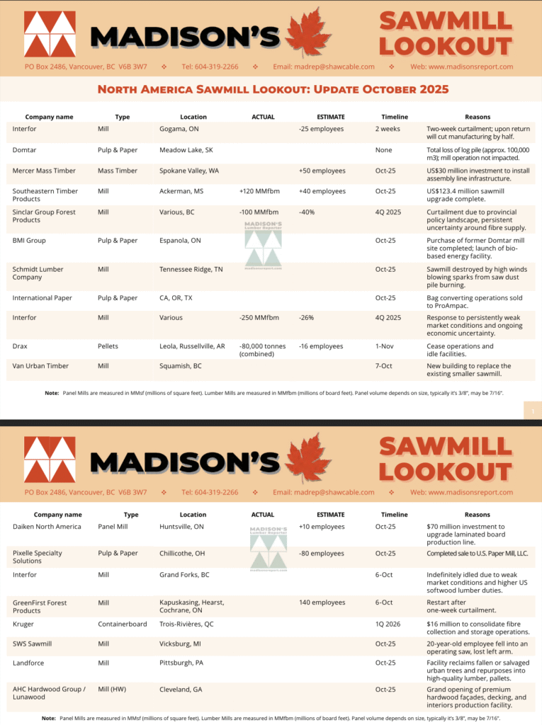 Madison’s Sawmill Curtailment Lookout: Oct 2025